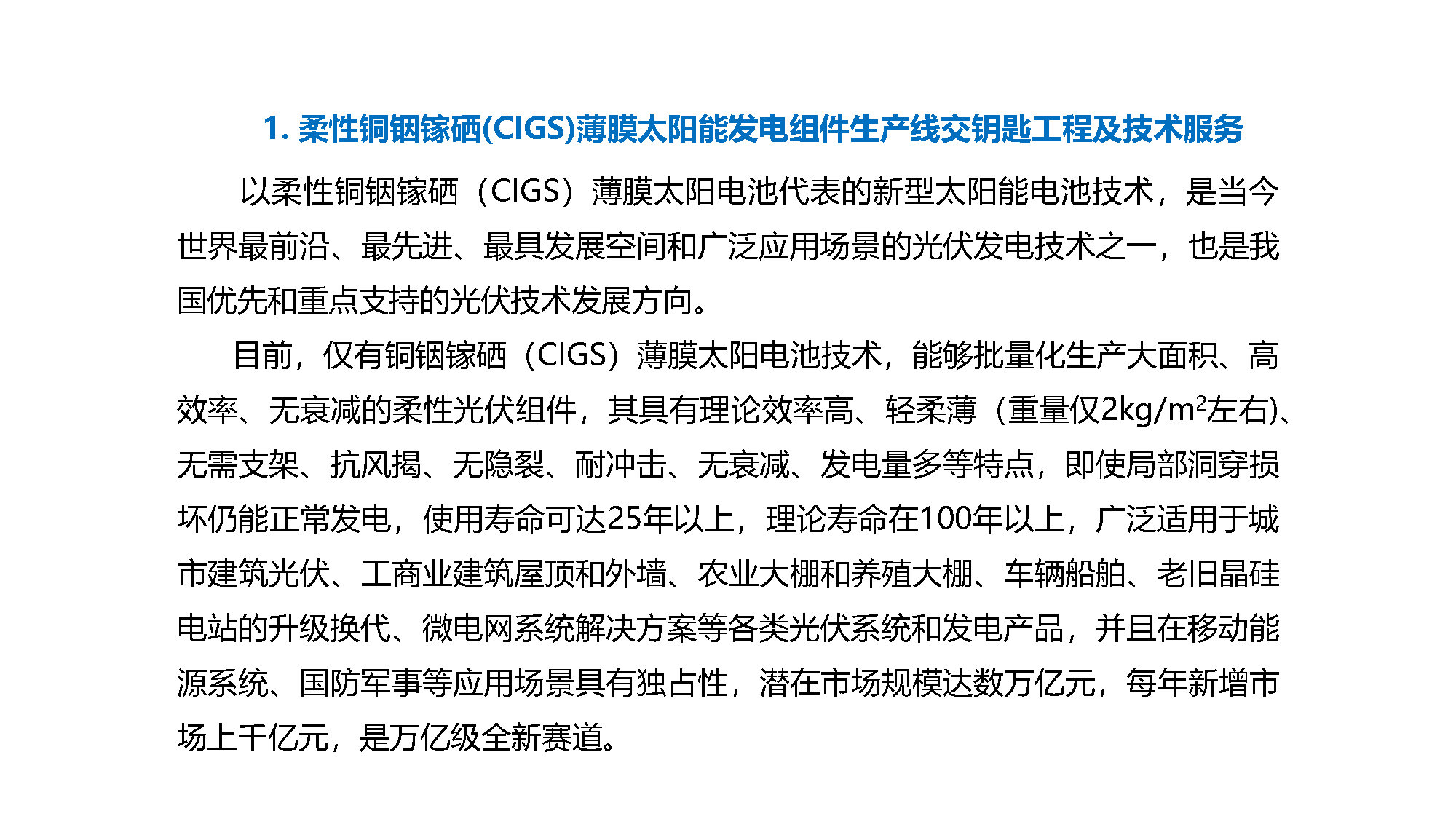 柔性铜铟镓硒(CIGS)薄膜发电组件系列