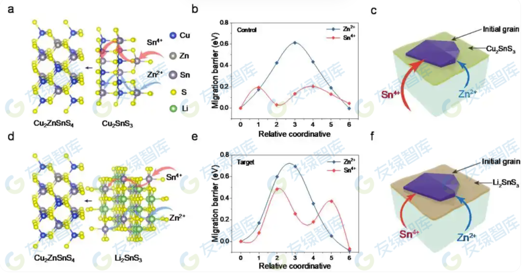 简单来说,团队在CZTSSe初始晶粒周围,引入了一层名为Li₂SnS₃的特殊界面相,它就像调控金属离子迁移的“交通指挥员”,在硒化反应的关键过程中,精准平衡Sn⁴+/Zn²+的迁移差异,引导金属离子按照预设路线有序移动,让晶粒实现更大、更均匀、更稳定的生长。这一技术从根本上减少了CZTSSe材料内部的晶界缺陷与深能级缺陷,大幅提升了材料的结晶质量,彻底破解了长期困扰行业的离子迁移不可控难题。